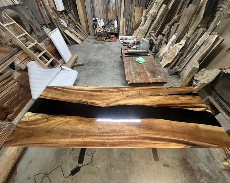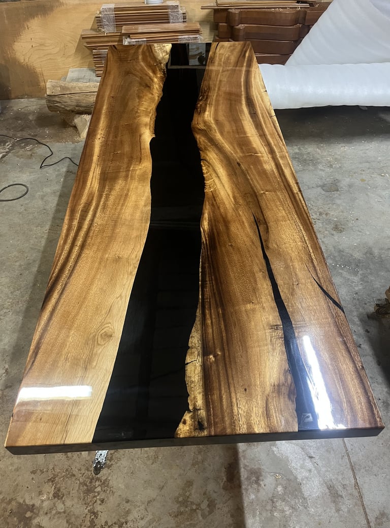 Mesa de madera de nogal con resina epoxy negra